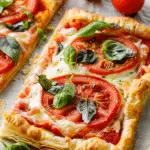 These Mini Margherita Pizzas are a simple yet elegant twist on classic pizza — crisp, flaky puff‑pastry crust topped with fresh tomato, basil, and melty cheese. They’re perfect for parties, snacks, or a light meal. With minimal prep and bake time, versatile ingredients, and easy variation options, they’re sure to become a go‑to recipe whenever you crave something delicious and bite‑sized.