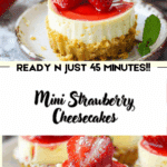 These mini strawberry cheesecakes are an elegant, crowd‑pleasing dessert that deliver all the richness of a full cheesecake in a convenient single‑serve size. With their creamy filling, bright strawberry topping, and simple baking method, they’re ideal for parties or anytime you want a special treat without the fuss of slicing a large cake. Enjoy!