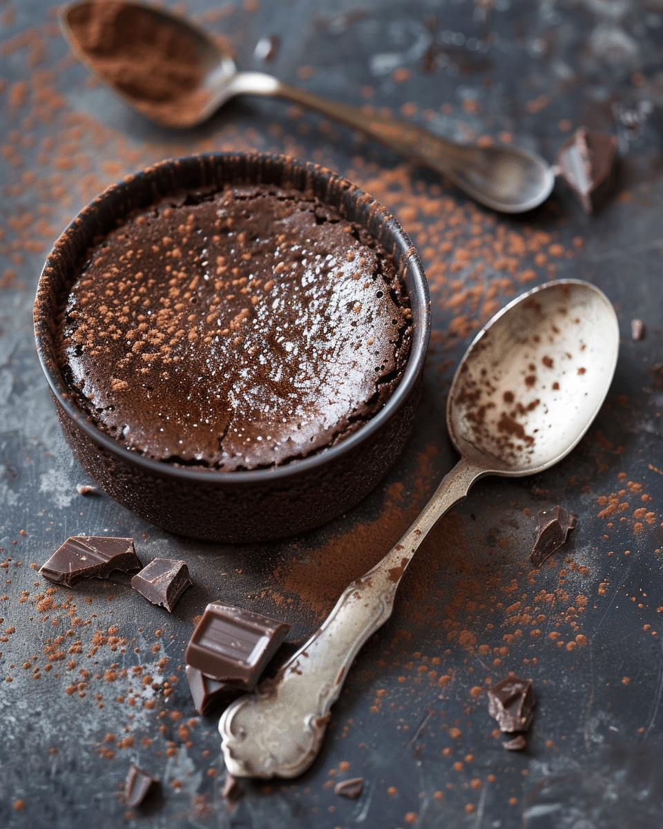 To make it even more decadent, serve it with fresh berries, a dusting of cocoa powder, or a spoonful of lightly whipped cream.