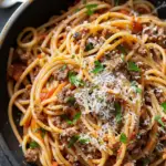 Monterey Spaghetti is a cheesy, hearty baked pasta dish loaded with seasoned ground beef, bell peppers, tomatoes, and plenty of Monterey Jack cheese for a comforting family-friendly meal.