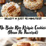 No bake Rice Krispie cookies with pecan pie flavor are a fun and easy treat that combines crunch, caramel sweetness, nutty richness, and smooth chocolate in every bite. They are simple enough for everyday baking projects but special enough for holidays and parties. Once you try them, they may become one of your favorite no bake desserts.