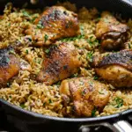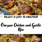 One‑pan Chicken and Garlic Rice is a comforting, flavor-rich meal that comes together with minimal effort and cleanup. With juicy, seasoned chicken resting over garlicky rice that captures all the savory goodness, it’s a reliable go-to for busy nights. Customize it with vegetables or herbs, serve it with a crisp salad or greens, and enjoy a satisfying dinner with little stress.