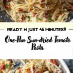 This One‑Pan Sun‑dried Tomato Pasta is the perfect quick‑and‑easy dish for busy nights: minimal ingredients, one pan, and a delicious balance of creamy, garlicky, and tangy flavors. Whether served simply or dressed up with added protein and fresh herbs — it’s a meal that’s satisfying and flexible. It’s a great option to keep in your regular rotation.