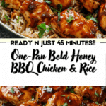 A hearty, flavor-packed one-pan dinner featuring tender chicken, sweet honey, smoky BBQ sauce, and fluffy rice—perfect for busy weeknights.