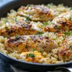 This recipe keeps dinner simple without sacrificing flavor. The chicken turns juicy and savory as it bakes over the rice, while the ranch seasoning and cheddar add a rich, comforting taste throughout the dish.