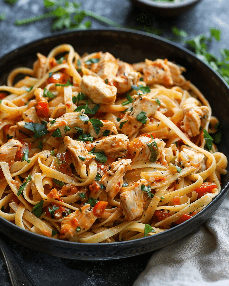 A creamy and flavorful one-pot pasta featuring tender Cajun-seasoned chicken, ranch dressing, and parmesan cheese. This comforting dish comes together quickly with bold spices and a rich, savory sauce.