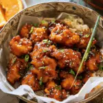This Orange Sesame Chicken is a healthier, homemade version of a takeout classic. It features crispy chicken bites tossed in a sticky, sweet, and tangy orange sauce with a touch of heat and a sprinkle of toasted sesame seeds.