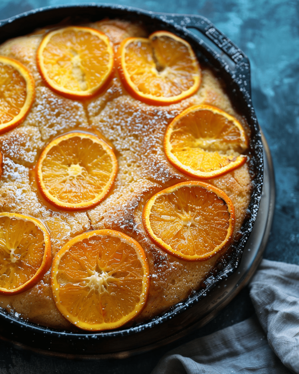 This cake is a great choice when you want something impressive without making a complicated dessert. The caramelized orange topping gives it a stunning finish, while the cake itself stays tender and fragrant. It is perfect for coffee time, brunch, or serving to guests when you want a homemade dessert that looks special straight out of the skillet.