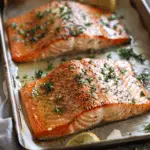 This oven-baked salmon is tender, flavorful, and coated in a savory garlic butter seasoning blend. It’s an easy and satisfying dish perfect for weeknight dinners or special occasions.