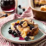 A cozy and comforting breakfast bake made with layers of fluffy bread, juicy blueberries, and a sweet, custard-like filling — perfect for prepping the night before and baking fresh in the morning.