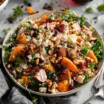 This Thanksgiving‑inspired salad brings together wholesome ingredients, vibrant fall flavors, and smart prep‑friendly design. Whether you’re contributing to a holiday potluck or simply looking for a make‑ahead side dish that shines, this salad delivers in both flavor and ease. Gather your ingredients, toss together that maple‑Dijon dressing, and enjoy a dish that looks as good as it tastes.