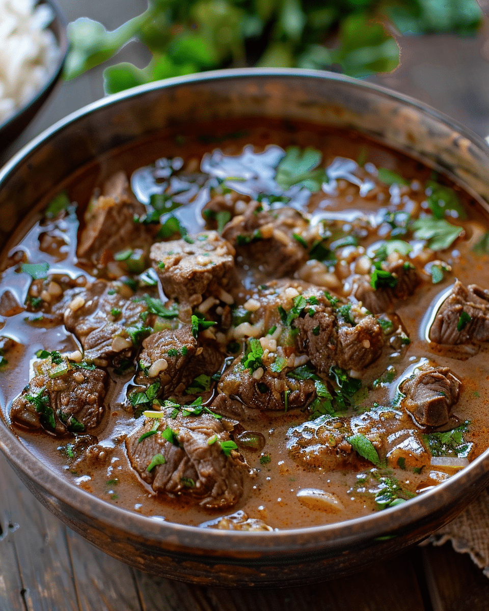 This Persian-inspired herb and beef stew is a rich yet refreshing dish that brings together tender meat, aromatic herbs, and bright citrus flavors. Whether cooked slowly or quickly under pressure, it’s a reliable, comforting recipe that’s perfect for family meals or meal prep.