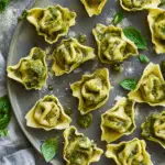 These Pesto Tortellini Bites are a simple and flavorful appetizer made by coating cheese tortellini in pesto, skewering them, and roasting until crispy. Perfect for parties or easy weeknight snacks.