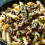 Lighter version: Use lean ground beef instead of sliced steak; swap heavy cream for milk + a little cream cheese.