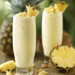 - Pour into glasses and garnish with a pineapple wedge or a sprinkle of shredded coconut, if desired.