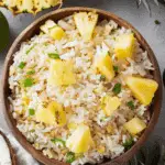 Pineapple Coconut Rice is a tropical-inspired side dish made with fragrant jasmine rice cooked in creamy coconut milk and mixed with sweet pineapple chunks. It’s a flavorful, dairy-free, and easily vegan recipe perfect for pairing with grilled meats, seafood, or enjoyed on its own.