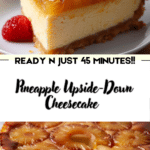 Pineapple Upside-Down Cheesecake is a deliciously unique dessert that brings together tropical charm and creamy indulgence. Its stunning appearance and balanced flavors make it a crowd-pleaser every time. Whether you’re making it for a special occasion or simply to treat yourself, this dessert promises to deliver a memorable and satisfying experience.