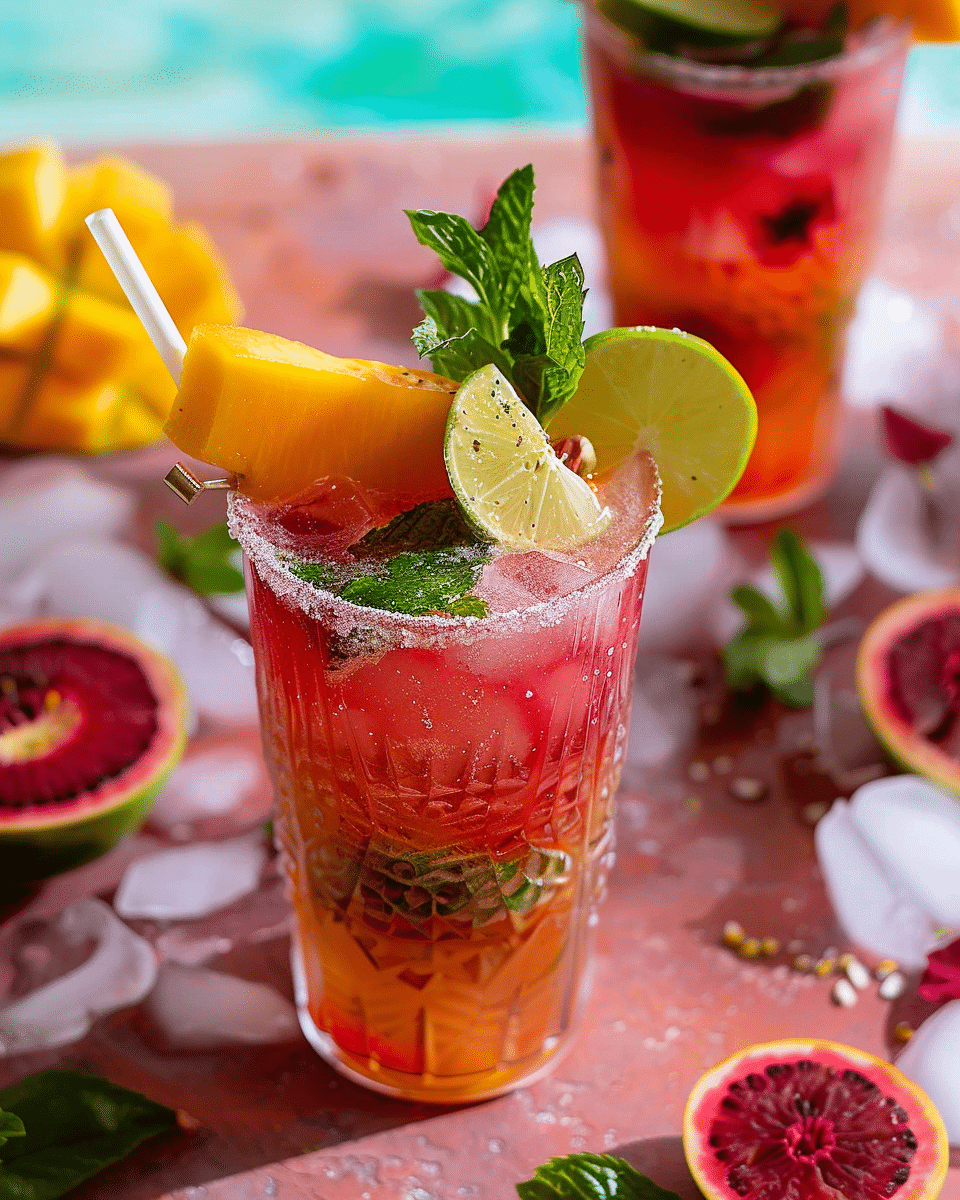 Yes — it’s especially refreshing when chilled, with the fruity juices and mint providing a cooling, revitalizing feel, perfect for warm days.