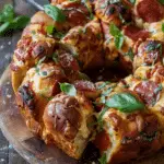 This recipe takes all the best parts of pizza—cheese, pepperoni, and bold Italian flavors—and transforms them into an interactive, hands-on snack. The use of refrigerated biscuit dough makes prep super simple, while the bundt pan presentation gives it that wow factor. It’s the perfect appetizer for gatherings, game days, or anytime you want a comforting, cheesy treat.