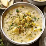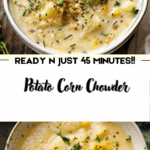 This creamy potato corn chowder is a comforting, hearty soup made with tender potatoes, sweet corn, and smoky bacon. It’s perfect for chilly nights and easy enough for a weeknight dinner.