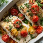 This dish is a wonderful example of how simple ingredients can create incredible flavor. The tomatoes and onions soften and become slightly sweet while baking, creating a delicious base for the fish. Olive oil and lemon juice add richness and brightness, while fresh herbs bring an aromatic finish.