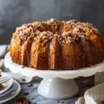 This cake is moist and tender thanks to the pumpkin puree and sour cream, perfectly spiced with cinnamon, ginger, nutmeg, and cloves. The crunchy brown sugar streusel adds a delightful texture contrast, and a simple glaze on top makes every bite feel cozy and indulgent. It’s easy to make by hand without any complicated techniques, and it yields plenty to share.