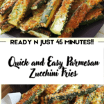 Quick and Easy Parmesan Zucchini Fries are a healthier alternative to traditional fries. Coated in a seasoned Parmesan breadcrumb mix and baked until crispy, these zucchini sticks make a perfect appetizer or side dish.