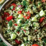 This quinoa tabbouleh is a refreshing and nourishing twist on a beloved Mediterranean dish. It’s quick to make, packed with fresh herbs and vegetables, and easy to adapt to your preferences or dietary needs. Whether you’re serving it as a side or a light main, this salad offers a bright, zesty flavor that holds up beautifully over a few days—perfect for meal prep, gatherings, or everyday eating.