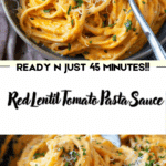 Red lentil tomato pasta sauce is a delicious and practical way to boost your everyday pasta dishes. With a creamy texture, rich flavor, and added nutrition, it’s perfect for families, meal prep, or anyone craving a wholesome, comforting meal. Whether you serve it plain or dressed up with cream and cheese, this sauce is sure to become a repeat favorite.
