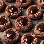 Rich chocolate thumbprint cookies filled with smooth and velvety ganache centers. These indulgent treats are perfect for holidays or special occasions, combining a soft chocolate cookie base with a creamy chocolate center.