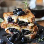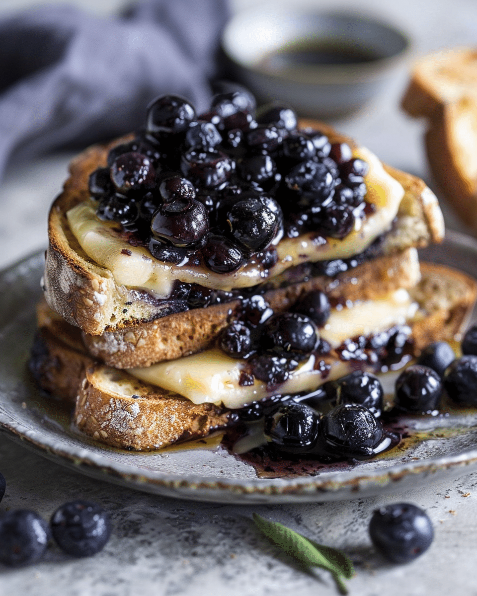 Sweet roasted blueberries infused with honey, lemon zest, and herbs served over creamy brie on warm cinnamon toast. A simple yet elegant sweet-savory dish perfect for brunch or dessert.