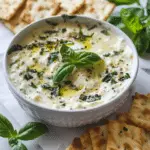 Roasted Garlic Basil Cheese Dip and Homemade Gluten Free Basil Crackers is a simple yet flavorful recipe that delivers a wonderful mix of creamy, crunchy, savory, and herby elements. The dip is rich and smooth, while the crackers add the perfect crisp bite. Whether you are making it for a snack board, an appetizer, or a homemade treat for yourself, this recipe is easy to enjoy and easy to make again.