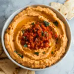 A creamy, flavorful roasted red pepper hummus made with chickpeas, tahini, garlic, and lemon juice. This easy dip is perfect for snacking, sandwiches, or party platters.