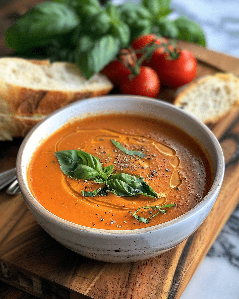 This soup bursts with the deep, natural sweetness of roasted tomatoes and the fresh brightness of basil. It’s warm and cozy for cooler days but light enough for any season. Whether you’re serving it as a simple lunch, an elegant starter, or alongside a grilled cheese sandwich, this recipe delivers satisfying flavor with wholesome ingredients.