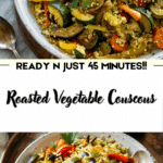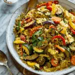 This Roasted Vegetable Couscous is a vibrant and healthy dish featuring a medley of oven-roasted vegetables mixed with light, fluffy couscous and seasoned with warm spices and a fresh lemony kick. It’s perfect as a side or a vegetarian main course.