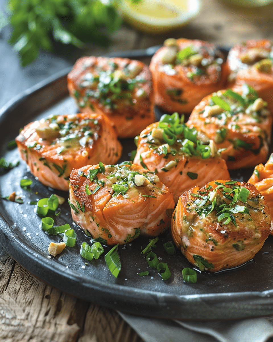 You can switch up the flavors easily. Try a spicy version with chili flakes or cayenne pepper. For an Asian-inspired twist, add sesame oil, ginger, and a sprinkle of sesame seeds. A garlic butter version with melted butter and fresh herbs also works beautifully. You can also air-fry the salmon bites at 400°F for about 7–9 minutes for extra crispiness.