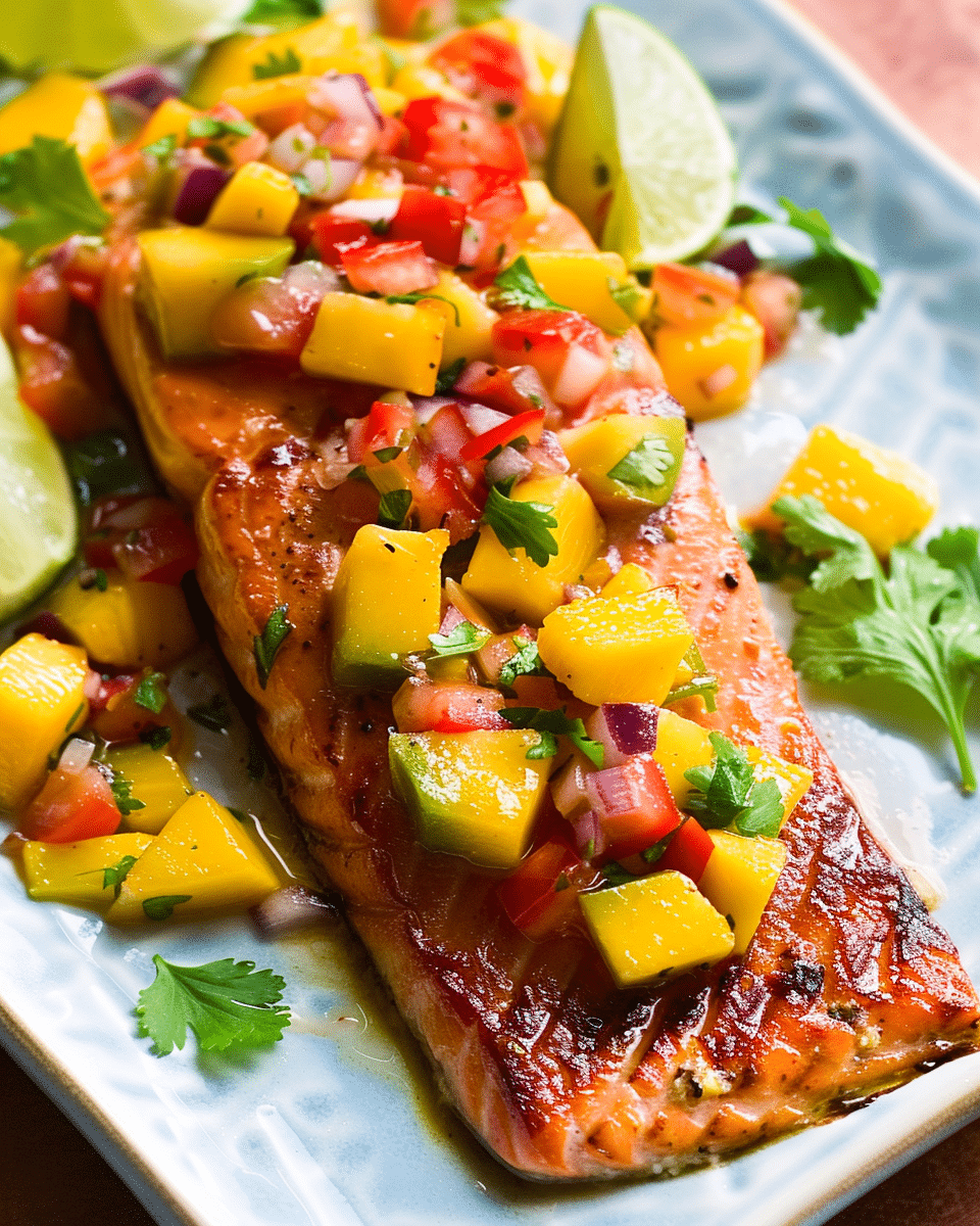 The mango salsa brings a tropical twist that complements the salmon beautifully.