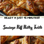 These Sausage Puff Pastry Twists are an easy, crowd‑pleasing appetizer or snack that combines flaky pastry with savory sausage and cheesy goodness. Whether for a party or a flavorful treat at home, they’re simple to prepare and endlessly customizable to your taste. Enjoy them warm with your favorite dipping sauce for maximum deliciousness.