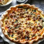 A savory, creamy quiche filled with flavorful sausage, tender spinach, and melted cheddar cheese in a flaky crust. Perfect for breakfast, brunch, or a make-ahead meal.