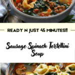 A hearty sausage, spinach, and tortellini soup simmered with tomatoes, white beans, and Italian herbs. This comforting one-pot meal is flavorful, filling, and perfect for a cozy dinner.