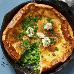 This savory Dutch baby is a striking and delicious change from the usual sweet pancake fare. With its puffed, golden base, and layered flavors of creamy cheese and bright herb‑infused peas, it brings both elegance and comfort to the table. Whether for a leisurely weekend brunch or a special light meal, it’s sure to impress while staying relatively simple to execute. Enjoy the moment when it comes out of the oven — that dramatic rise and crisp edge won’t last long!