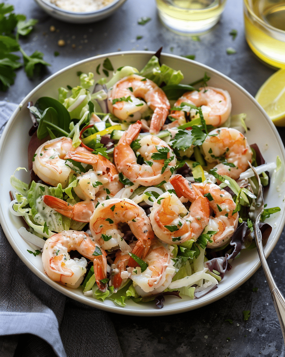 For a lighter version, replace part of the mayonnaise with Greek yogurt. If you want more crunch, add finely chopped celery or cucumber. Fresh dill or parsley can bring an herby note that pairs beautifully with the shrimp and lemon. For a little heat, stir in a pinch of chili flakes or a small amount of hot sauce.