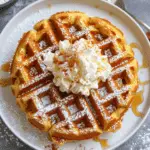 Warm, fluffy pumpkin waffles with cozy spices and a hint of maple sweetness, perfect for a comforting breakfast or brunch.