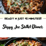 This Sloppy Joe Skillet Dinner is a quick, one-pan meal that combines the savory flavors of classic sloppy joes with pasta for a comforting and satisfying family-friendly dish.