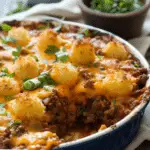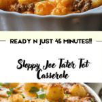 This Sloppy Joe Tater Tot Casserole is a hearty, family-friendly dish that combines the sweet and tangy flavors of Sloppy Joes with the crispy goodness of tater tots. It’s an easy weeknight dinner that’s filling and comforting, topped with melted cheese for the perfect finish.