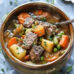 This recipe delivers maximum flavor with minimal effort. The slow cooker does most of the work, turning inexpensive cuts of beef into a rich and satisfying stew. The combination of savory broth, aromatic herbs, and colorful vegetables creates a comforting meal that tastes even better the next day.