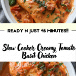 This Slow Cooker Creamy Tomato Basil Chicken is a rich and flavorful dish made with tender chicken breasts simmered in a creamy tomato and basil sauce. It’s perfect served over pasta, rice, or with crusty bread for a comforting meal.