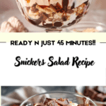 Snickers Salad is a quick, fun dessert that brings together creamy pudding, fluffy Cool Whip, crisp apples, and rich candy bar pieces. Whether you’re making it for a party, potluck, or just a sweet treat at home, it’s sure to delight with its mix of textures and flavors.