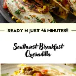 This Southwest Breakfast Quesadilla is a hearty, flavor-packed morning meal filled with scrambled eggs, black beans, fresh vegetables, and melted cheese, all tucked inside a crispy whole-wheat tortilla. Perfect for a quick and satisfying breakfast.
