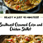 This Southwest Creamed Corn and Chicken Skillet is a flavorful, easy one-pan meal made with tender chicken, sweet corn, peppers, and a creamy, cheesy sauce. Perfect for weeknight dinners, it’s both hearty and comforting with a Tex-Mex twist.